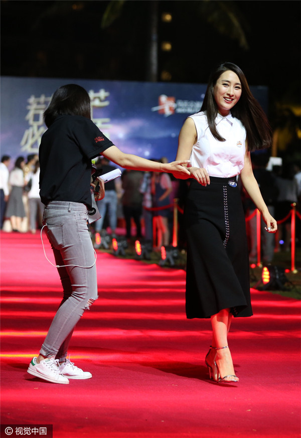 马苏黑白配亮相,红毯上又专人搀扶踩着高跟鞋的她。>>获年度喜剧先锋 马苏穿抹胸纱裙性感爆乳