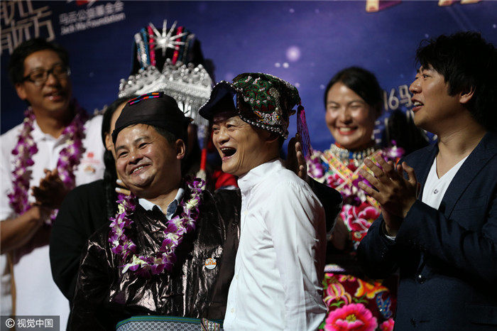 马云现场获贵州获奖老师赠送民族服饰帽子,带上花帽子的马爸爸竟然还有一丝娇美。这位老师是来自贵州黔东南黎平县的侗族的吴尚兴老师,这顶帽子是他花了整整一年的时间亲手做的,现在能亲手给马云戴上,也算得偿所愿。